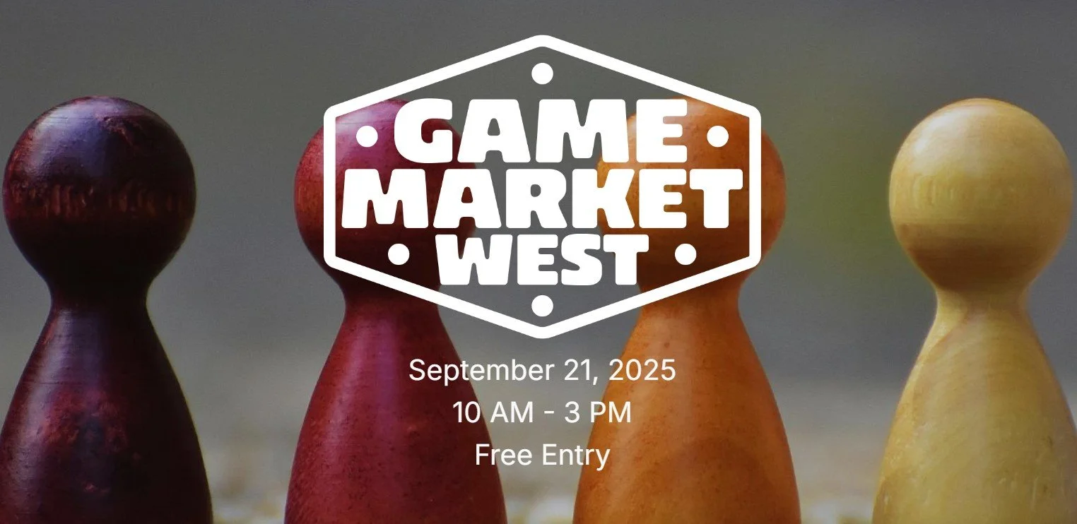Game Market West Sunday, September 21, 2025 10:00 AM 3:00 PM Google Calendar ICS An indie board game showcase is coming to Guildhouse! Buy and meet the designers behind some awesome board games and play them with friends in a dedicated open play area! For more information, check them out here: https://www.gamemarketwest.com/Free Entry